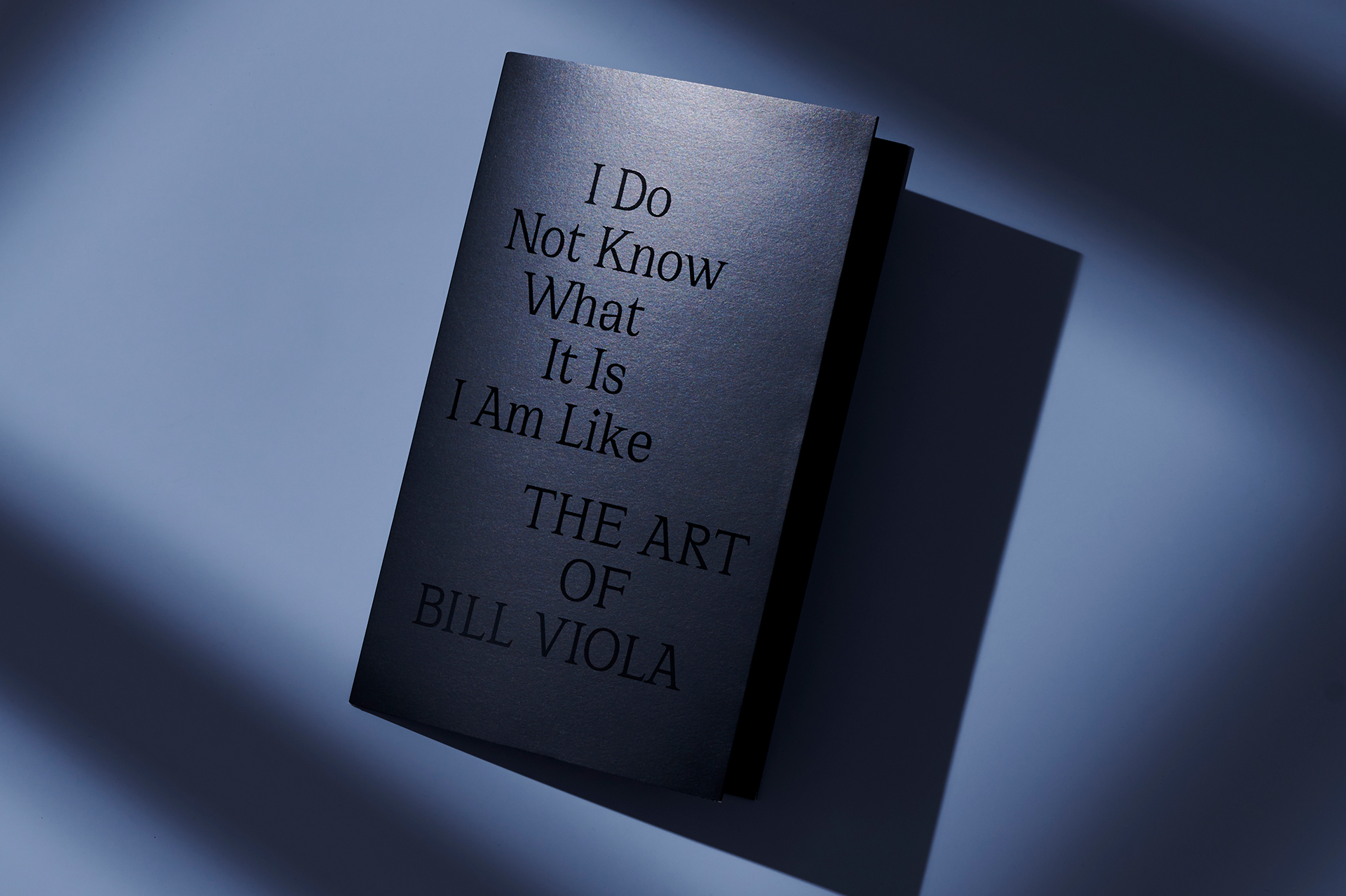 Viola's works frequently feature strongly centered compositions, which we chose to mirror in the exhibition identity. The brochure is printed economically in black ink on uncoated stock. The invitation features black spot UV ink on matte-coated black stock, evoking Viola's art's quiet, dark nature. Exhibition wall texts were executed through silk-screen printing directly to the wall and cut vinyl application.